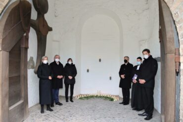 Gemeinsam mit den Pfarrerinnen und Pfarrern der Meerbuscher Kirchengemeinden hat Bürgermeister Christian Bommers am Sonntag im Mahnmal Alter Kirchturm in...