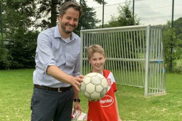 Hinter der Forstenberghalle kann jetzt wieder nach Herzenslust gekickt werden. Elias Schröder aus Lank ist „stolz wie Oskar“: Er hat...