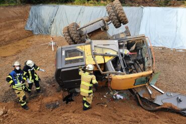 Am Mittwochmittag rutschte aus bisher ungeklärter Ursache ein Bagger in Strümp auf der Pfarrer-Wohl-Straße rund drei Meter in eine Baugrube...