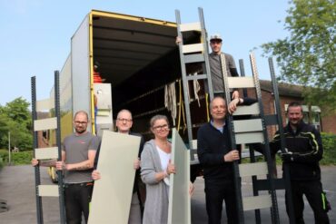 150 Stahlregale mit rund 600 Regalmetern haben sich am Mittwoch, 4. Mai, auf den Weg von Meerbusch in die rund...