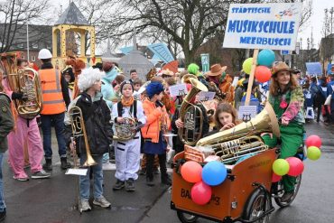 Mit 50 Kindern und Jugendlichen aller Altersgruppen hat die Städtische Musikschule Meerbusch beim Kinderkarnevalszug in Lank-Latum beste Eigenwerbung betrieben. Mit...
