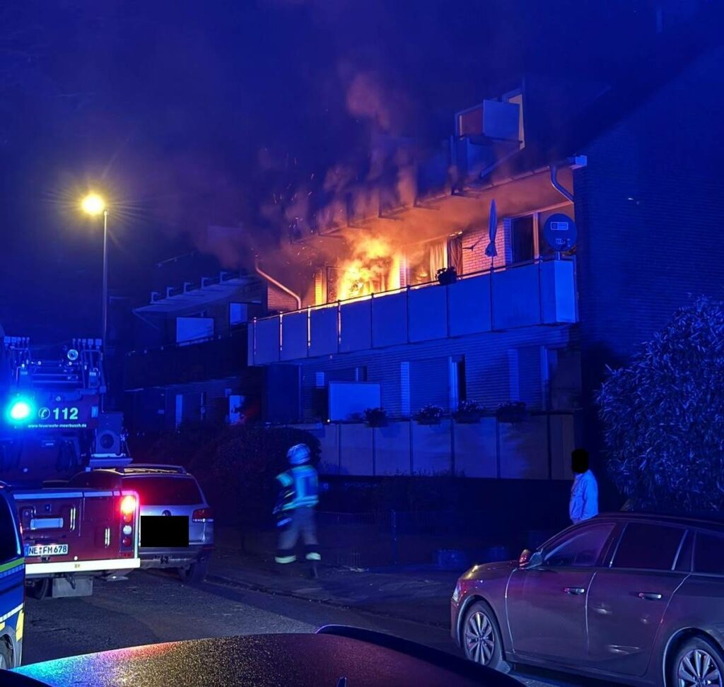 Am frühen Sonntagmorgen wurde die Feuerwehr Meerbusch zum Hohegrabenweg in Büderich alarmiert. Auf einem Balkon im ersten Obergeschoss war das Mobiliar in Brand geraten. Da alle Bewohner das Haus unverletzt verließen, konnten sich die Maßnahmen der Feuerwehr auf die Brandbekämpfung konzentrieren. Die Fenster der betreffenden Wohnungen waren intakt geblieben, so dass die Flammen von außen über eine Drehleiter mit einen Rohr binnen weniger Minuten gelöscht wurden. Die rund 25 angerückten Feuerwehrleute der Einheiten aus Büderich, Strümp sowie der hauptamtlichen Feuerwache kontrollierten noch das angrenzende Dach und lüfteten die Wohnungen mit einem Überdruckventilator. Nach Abschluss der Maßnahmen konnten alle Hausbewohner in ihre Wohnungen zurückkehren. Die Einsatzdauer betrug ca. 90 Minuten, ebenfalls vor Ort waren Kräfte des Rettungsdienstes und der Polizei.