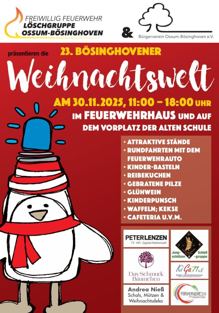 Besonders erfreulich: Die Preise bleiben bewusst familienfreundlich und niedrig, da die Veranstaltung von engagierten ehrenamtlichen Vereinen – darunter die Freiwillige Feuerwehr Ossum-Bösinghoven und der Bürgerverein Ossum-Bösinghoven – organisiert wird.