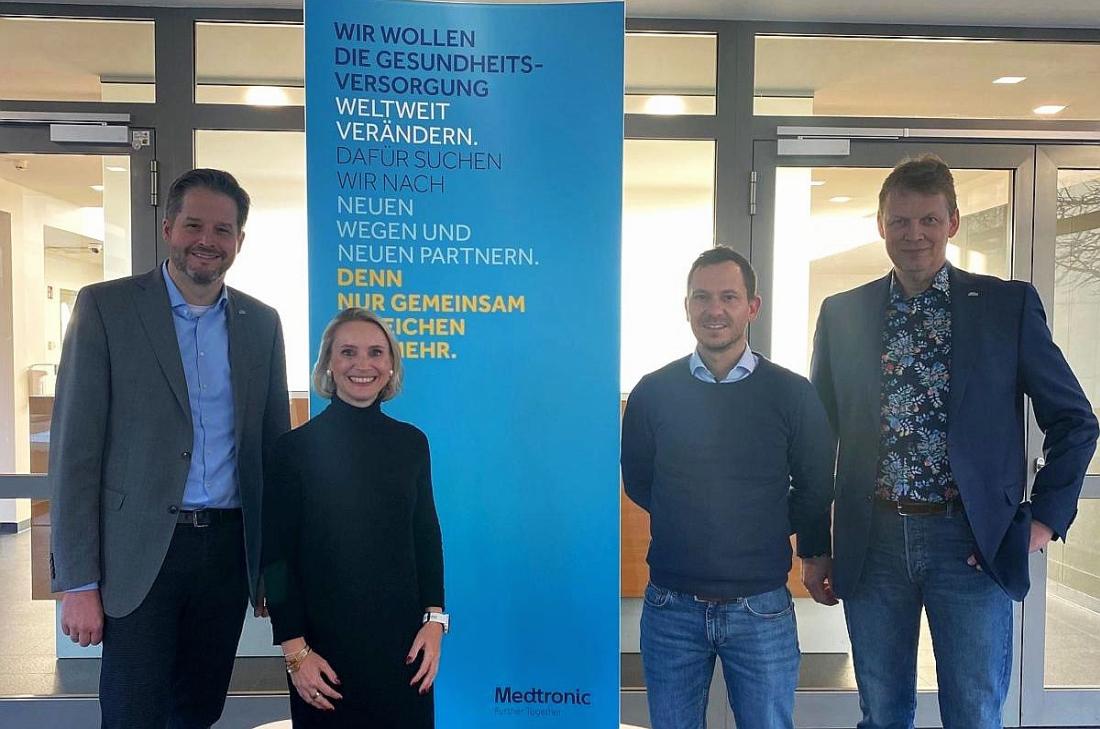 Christian Bommers mit Medtronic-Geschäftsführerin Dorothee Stamm, Wirtschaftsförderer Stephan Benninghoven und Stadtkämmerer Christian Volmerich.