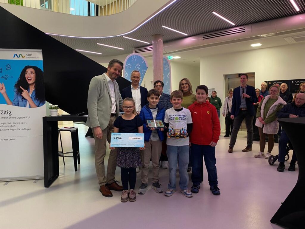 Große Freude, Stolz und vor allem jede Menge Motivation für das, was noch kommt: Das VHS-Team Meerbusch.Robotics durfte am 24. März bei der Preisverleihung der Stadtwerke Meerbusch einen ganz besonderen Moment erleben. Aus den Händen von Bürgermeister Christian Bommers erhielten die jungen Tüftlerinnen und Tüftler einen symbolischen Scheck über 1.200 Euro – der verdiente Lohn für den dritten Platz im Wettbewerb „Euer Projekt, Eure Stimme“ in der Kategorie „Bildung und Soziales“.