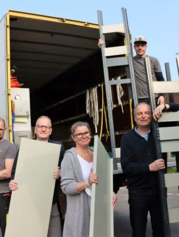 150 Stahlregale mit rund 600 Regalmetern haben sich am Mittwoch, 4. Mai, auf den Weg von Meerbusch in die rund...